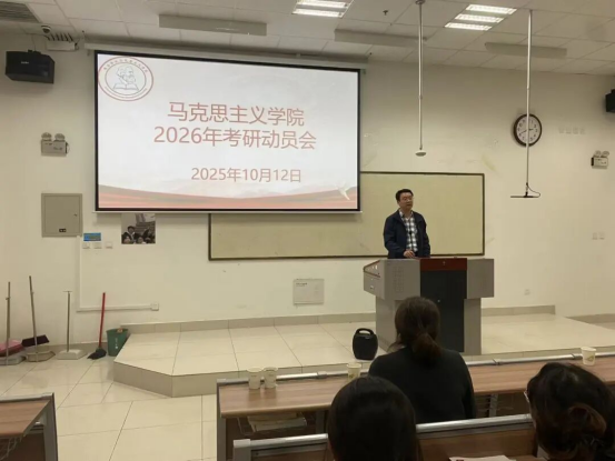 为点燃马院学子考研斗志,明晰备考方向,10月12日下午,马克思主义学院于8号教学楼多媒体31教室召开考研动员大会。我院党总支书记王霄飞、副院长武永耿出席会议。毕业班全体学生及辅导员参加会议。